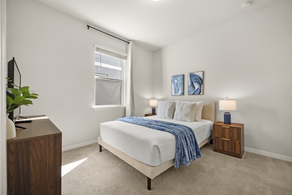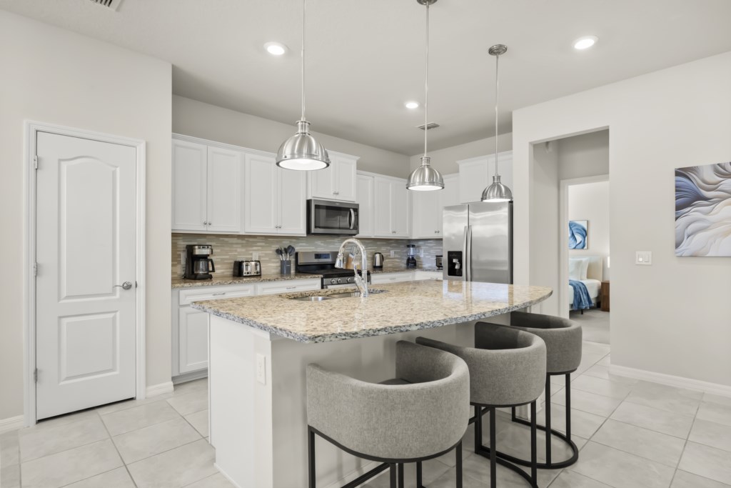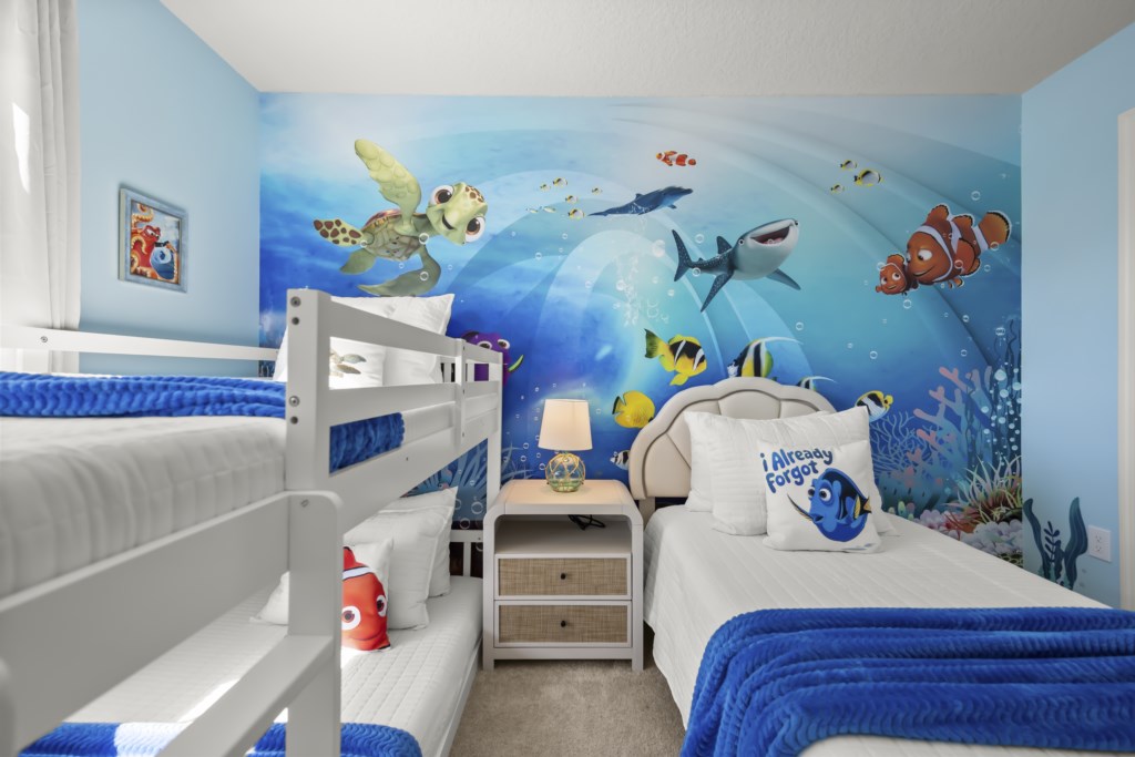 • Community: Solterra Resort • 5 Bedrooms/ 4 Bathrooms/ Sleeps 12 • Disney (9.4 mi) SeaWorld (18.9 mi) Legoland (27.1 mi) • Convention Center (12.7 mi) Universal Studios (21.1 mi) • Location: Oakmoss Loop, Davenport FL 33837 DETAILS • 2,700 sqft • Central AC • Roku & Wi-Fi • Washer & Dryer • Fully Equipped Kitchen • Towels & Linens Provided • Washcloths Are Not Provided • Family Room with Flat Screen TV • Hair Dryers, Iron & Ironing Board • Private Door Code for Each Guest Stay • Outdoor Patio Furniture with Sun Loungers • Pack 'n play/ High Chair (Free Upon Request) • Private Screened-in Pool + Child Safety Pool Fence SOLTERRA RESORT AMENITIES * ONE-TIME FEE PER HOUSE PER RESERVATION Must be paid directly to Solterra Resort. • Jacuzzi • Clubhouse • Lazy River • Waterslide • Playground • Soccer Field • Tennis Court • Walking Trail • Fitness Center • Beach Volleyball • Poolside Cabanas • Gated Community • Cafe Sol Poolside Bar & Grill • Resort Style Pool with Beach Entry - USEFUL INFORMATION • PARKING Parking is free. The community allows up to 5 cars per unit to enter the resort. Vehicles must not be parked on the sidewalk nor on the grass. Street parking is not pemitted. There are overflow parking spaces, but not guaranteed as they are not assigned nor reserved. Commercial Vehicles, RVS, Trailers, Buses, Golf Carts or Boats are not allowed at Solterra Resort. > Failure to follow the community guidelines may result in the car being towed at the guest's expense. • THIS HOME IS SELF-CATERING We do provide a small welcome kit to get you started. Please stop by the nearest supermarket to gather any additional items you may need for the duration of your stay. • POOL HEAT - OPTIONAL 1-Cost: $35 per day. 2-Request 48 hours in advance. 3-Minimum: 2 consecutive days. 4-Temperature will not exceed 95F. 5-Heater works through HEAT EXCHANGE and WILL NOT WORK in cold weather. If you still would like to heat the pool during cold conditions and it does not reach the desired temperature, we will not be able to offer a refund. The pool heater pumps have a safety system that prevents overheating of the element when the pump is working overtime in cold weather. It automatically shuts off briefly until the pump can regain its functionality efficiently. Keep in mind this service is optional and may not be available at times. • BBQ RENTAL - OPTIONAL - Cost: $75 All Stay • BEDROOM SETUP FIRST FLOOR Bedroom 1: 1 Queen Bed + Bathroom In Hallway SECOND FLOOR Bedroom 2: 1 Queen Bed (Private Bathroom) Bedroom 3: 1 King Bed (Private Bathroom) Bedroom 4: 1 Bunk Bed (Twin Over Twin) +1 Twin Bed (Forest Theme) Bedroom 5: 1 Bunk Bed (Twin Over Twin) + 1 Twin Bed (Nemo Theme) + Bathroom In Hallway • TRASH DISPOSAL Please place trash in the plastic bench daily to keep a clean home. • HOUSEKEEPING There is no daily housekeeping service provided in the rental rate. Before check-in, the unit will be thoroughly cleaned and inspected by a professional cleaning company. Clean sheets and towels will be available in the unit. Mid-stay cleaning services during your stay can be requested for an additional fee. • ONLINE PURCHASE If the online seller uses USPS, it will not get delivered as the Post Office does not recognize vacation homes as regular addresses and the package will be returned back to the sender. Only UPS, DHL and FEDEX delivers them. In some resorts the packages are delivered to the clubhouse. Fees may apply. Some resorts may not accept them. Keep in mind we are not responsible for unexpected issues with your online purchases. If you have any questions, please contact us. PLEASE NOTE: Additional charges apply when the owner has to fix something or pay for additional cleaning if not complied.