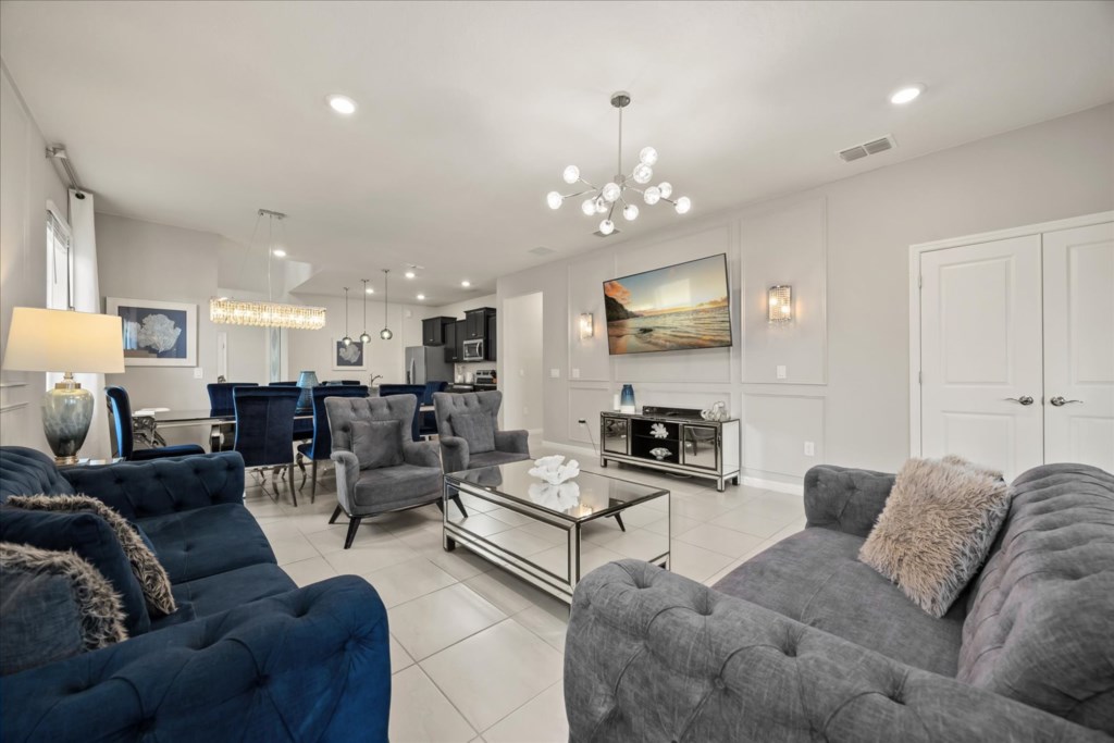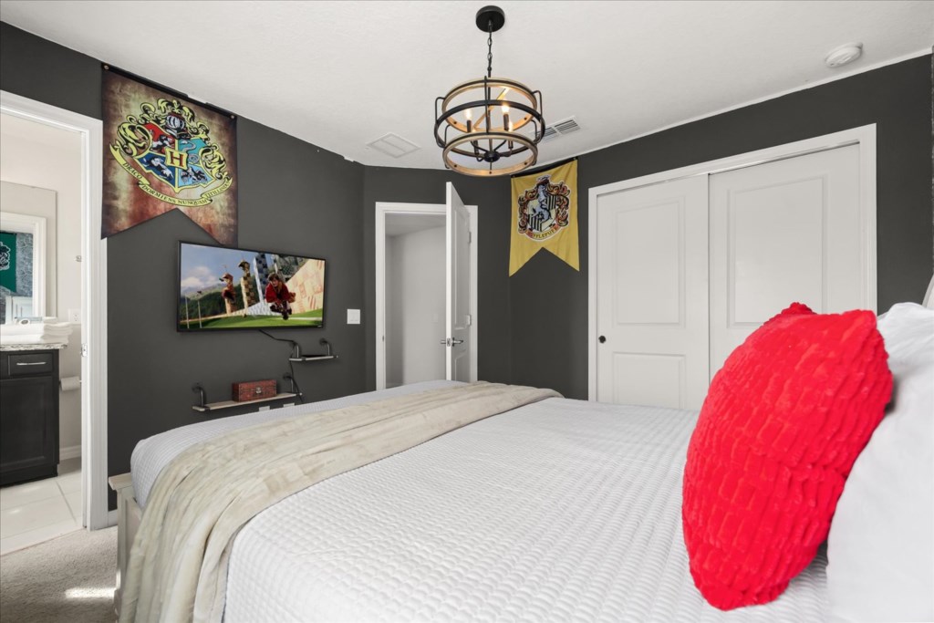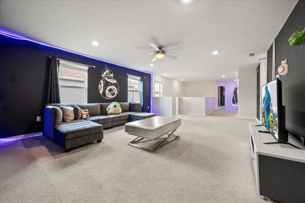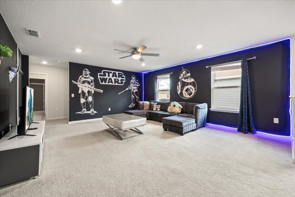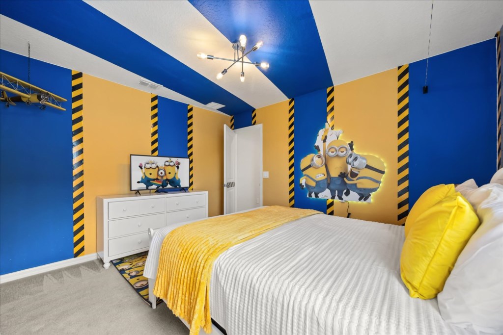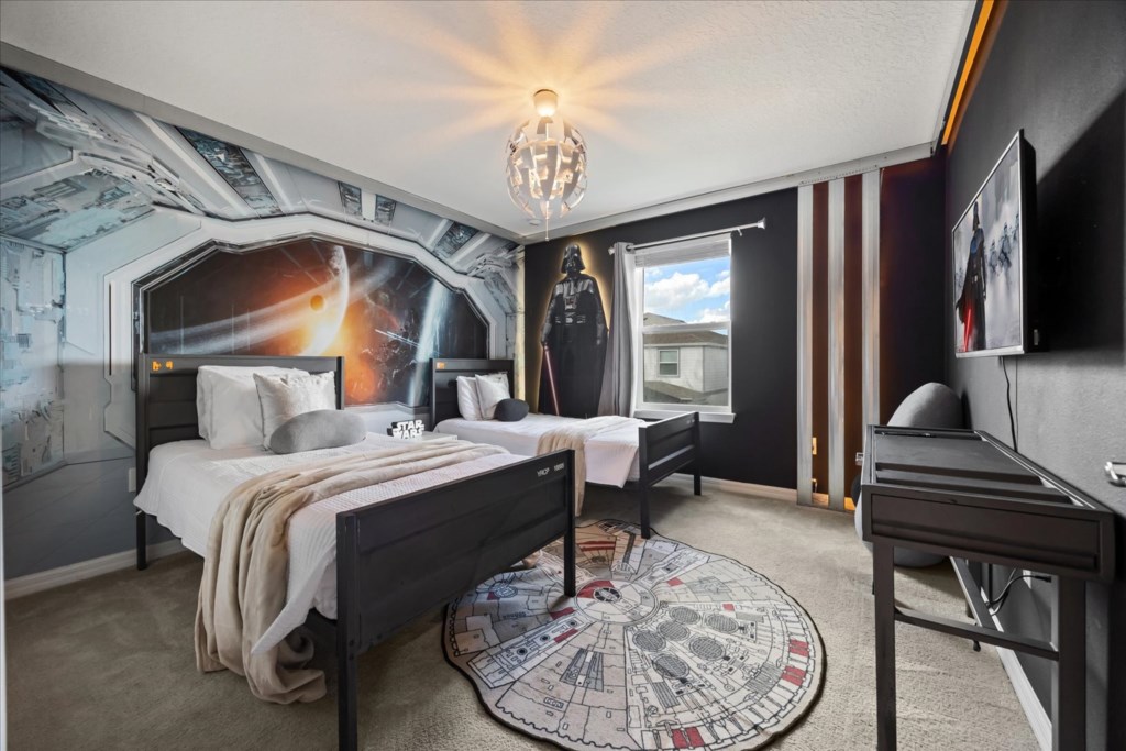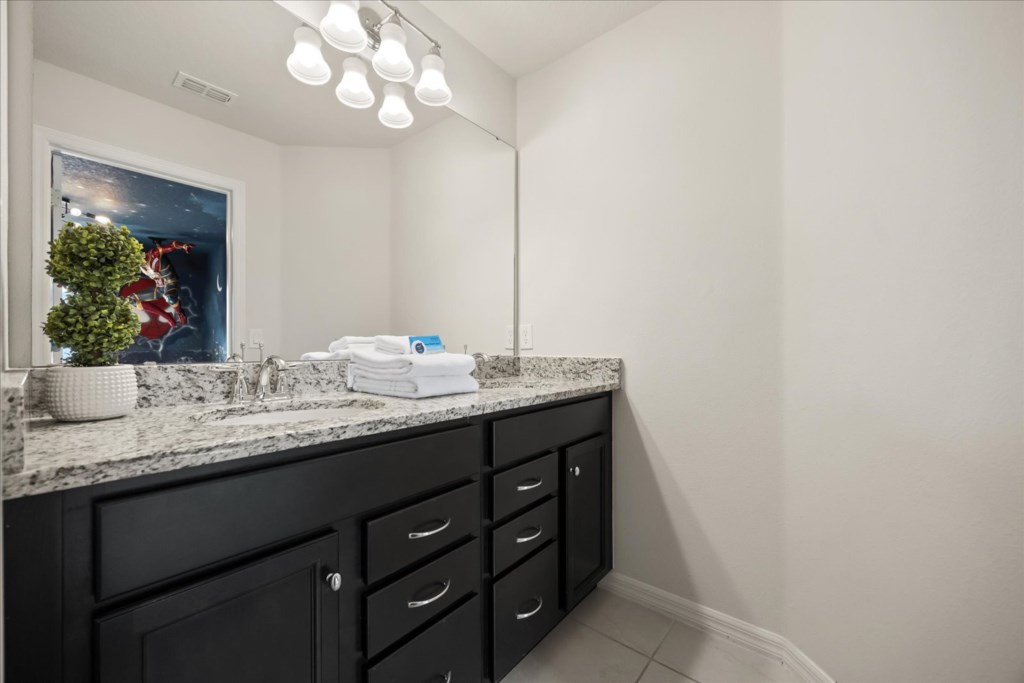 • Community: Windsor Island • 7 Bedrooms/ 5.5 Bathrooms/ Sleeps 14 • Disney World® (8.2 miles) SeaWorld (17.2 miles) • Convention Center (18.3 miles) ICON Park (20.0miles) • Universal Studios (21.0 miles) Epic Universe (20.2 miles) • Location: Lelani Circle, Davenport, FL 33897 DETAILS • 3,354 sqft • Central AC • Washer & Dryer • Cable TV & Wi-Fi • TV In Every Bedroom • Fully Equipped Kitchen • Towels & Linens Provided • Washcloths Are Not Provided • Family Room with Flat Screen TV • Hair Dryers, Iron & Ironing Board • Private Door Code for Each Guest Stay • Outdoor Patio Furniture with Sun Loungers • Pack 'n play/ High Chair (Free Upon Request) • Private Screened-in Pool + Child Safety Pool Fence - BEDROOM SETUP FIRST FLOOR Bedroom 1: 1 King Bed + Attached Bathroom Shared With Pool (Frozen Theme) + Half Bathroom SECOND FLOOR Bedroom 2: 1 Queen Bed (Private Bathroom) (Harry Potter Theme) Bedroom 3: 1 Bunk Bed (Twin Over Twin) (Private Bathroom) (Spider Men Theme) Bedroom 4: 1 Full Bed + Bathroom In Hallway Bedroom 5: 1 Full Bed (Minions Theme) Bedroom 6: 2 Twin Beds (Star Wars Theme) Bedroom 7: 2 Twin Beds (Mickey Theme) + Bathroom In Hallway USEFUL INFORMATION • CHECKING IN AND OUT Check-in after 4:00 PM Checkout before 10:00 AM • WINDSOR ISLAND PARKING - Parking is free. - Limit of 5 vehicles. - One side street parking: vehicles are allowed to park on designated sides of the street, as indicated by street signs. - No parking on grass or blocking the sidewalks. - Commercial vehicles, RVs, trailers, buses, golf carts or boats are not allowed. - Vehicle in violation of parking policy will be towed at the guest's expense. • THIS HOME IS SELF-CATERING We do provide a small welcome kit to get you started. You can stop by the nearest supermarket to gather any additional items you may need for the duration of your stay. Please bring your own washcloths as we only provide towels. • POOL HEAT - OPTIONAL 1-Cost: $35 per day. 2-Request 48 hours in advance. 3-Minimum: 2 consecutive days. 4-Temperature will not exceed 95F. 5-Attached spa is NOT a hot tub. It can only be heated if the entire pool is heated. Both have the same temperature. It does not have jets. 6-Heater works through HEAT EXCHANGE and WILL NOT WORK in cold weather. If you still would like to heat the pool during cold conditions and it does not reach the desired temperature, we will not be able to offer a refund. The pool heater pumps have a safety system that prevents overheating of the element when the pump is working overtime in cold weather. It automatically shuts off briefly until the pump can regain its functionality efficiently. Keep in mind this service is optional and may not be available at times. • BBQ RENTAL - OPTIONAL - Cost: $75 All Stay • TRASH DISPOSAL Please dispose the trash daily in the plastic bench or bin to keep a clean home. • HOUSEKEEPING There is no daily housekeeping service provided in the rental rate. Before check-in, the unit will be thoroughly cleaned and inspected by a professional cleaning company. Mid-stay cleaning services during your stay can be requested for an additional fee. • ONLINE PURCHASE If the online seller uses USPS, it will not get delivered as the Post Office does not recognize vacation homes as regular addresses and the package will be returned back to the sender. Only UPS, DHL and FEDEX delivers them. In some resorts the packages are delivered to the clubhouse. Fees may apply. Some resorts may not accept them. Keep in mind we are not responsible for unexpected issues with your online purchases. If you have any questions, please contact us. • WINDSOR ISLAND RESORT AMENITIES - 30-DAY STAY LIMIT - Hot Tub - Lazy River - Water Slide - Fitness Center - Miniature Golf - Gated Community - Sand Volleyball - Basketball Court - Zero-entry Heated Pool - Children's Splash Pad - Restaurant, Cafe and Ice Cream Shop - Umbrella seating, Hammocks, and Cabanas - Fire Pit with View of Disney Fireworks PLEASE NOTE: Additional charges apply when the owner has to fix something or pay for additional cleaning if not complied.